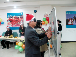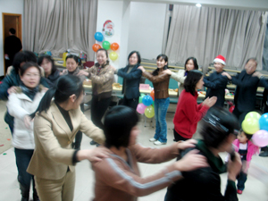 此次圣誕聯(lián)歡會主題是《勇敢者游戲》,主要以游戲為主。為充分調(diào)動大家的積極性和參與性,全體人員分為四個方隊:Alan 、Thomas 、Judy 、Jesus進(jìn)行競賽,每個方隊通過投擲骰子來選擇游戲,骰子的不同點數(shù)代表不同的任務(wù),在完成相應(yīng)的點數(shù)所代表的任務(wù)時獲得相應(yīng)的加分,得分最高者將被評為圣誕活動的“勇敢者之隊”。為了爭做第一,每個方隊的成員都使出渾身解數(shù),為了小團隊的榮譽而全力以赴、奮勇拼爭。此次活動中的游戲生動活躍、趣味橫生,驚喜層出不窮,既有娛樂性的游戲,如《我是模特》、《草裙舞》、《瞬間做表情》等,又有智慧型游戲,如《百科全書》、《歌曲猜猜看》等,還有力量型游戲,如《鐵扇公主斗法術(shù)》、《船東和青蛙》等,這是一場集娛樂、智慧和力量為一體的游戲大比拼,臺上臺下氣氛熱烈、場面火爆,笑聲、吶喊聲、加油聲一浪高過一浪,整個會議室成為一片歡樂的海洋。