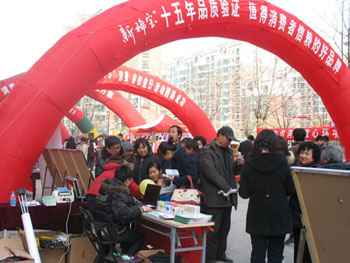 2010311上午九點(diǎn),由濟(jì)南高新技術(shù)產(chǎn)業(yè)開(kāi)發(fā)區(qū)管委會(huì)主辦的“3.15國(guó)際消費(fèi)者權(quán)益日紀(jì)念活動(dòng)”在高新區(qū)康虹路隆重舉行。高新區(qū)工商、質(zhì)監(jiān)、衛(wèi)生等相關(guān)職能部門(mén)和轄區(qū)內(nèi)近200家企業(yè)參加了此次紀(jì)念活動(dòng),我公司作為高新區(qū)的優(yōu)秀企業(yè)、省消費(fèi)者滿意單位,也積極參加了此次活動(dòng).
