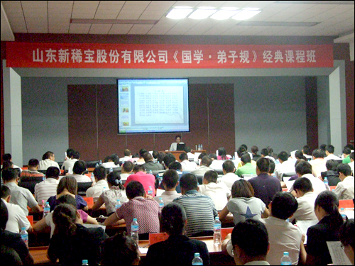 2010年7月14日,濟(jì)南高新區(qū)大學(xué)科技園四樓會(huì)議室里氣氛熱烈,掌聲雷動(dòng),這里是山東新稀寶外訓(xùn)現(xiàn)場(chǎng),來自全國(guó)的銷售精英和來自后勤的工作人員近200人參加了此次《國(guó)學(xué).弟子規(guī)》經(jīng)典課程培訓(xùn)。