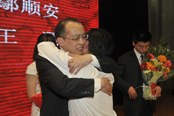 湯經(jīng)理與忠誠敬業(yè)貢獻(xiàn)獎(jiǎng)獲獎(jiǎng)人員熱情擁抱 湯經(jīng)理與忠誠敬業(yè)貢獻(xiàn)獎(jiǎng)人員合影