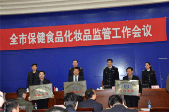 2013年3月13日,由濟(jì)南市食品藥品監(jiān)督管理局主辦的“濟(jì)南市保健食品化妝品監(jiān)管工作會(huì)議”在龍奧大廈隆重召開,來(lái)自濟(jì)南市及各縣(市)區(qū)監(jiān)管系統(tǒng)一線的執(zhí)法工作人員參加了此次會(huì)議。會(huì)議由濟(jì)南市食品藥品監(jiān)督管理局?;庩悘V銀處長(zhǎng)主持,濟(jì)南市食品藥品監(jiān)督管理局衣光軍副局長(zhǎng)、保化處杜曉偉科長(zhǎng)、?;幹煦y和科長(zhǎng)出席會(huì)議,我公司和山東天地健生物工程有限公司、山東福瑞達(dá)生物工程有限公司參加了此次會(huì)議,并上臺(tái)領(lǐng)取了“濟(jì)南市保健食品化妝品監(jiān)管實(shí)踐基地”的標(biāo)牌。
