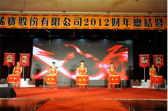 陽春四月,春染濟南,生機無限。2013年4月17日,“山東新稀寶股份有限公司2012財年總結暨表彰大會”在黃臺大酒店齊魯廳隆重開幕。來自醫(yī)藥事業(yè)部、電商事業(yè)部的全體精英以及后勤各職能部門、生產基地和孕嬰事業(yè)部的部分代表共計300余人參加了此次盛會。董事長湯傳忠先生、常務副總經理杜征國先生、副總經理鄭朝霞女士及其他高層領導共同見證了這一盛舉。會場內充滿了濃濃“旌旗獵獵會英雄,戰(zhàn)鼓隆隆震天地”的戰(zhàn)場古風,自信熱情的笑臉洋溢著新稀寶人火熱的激情,飄揚的戰(zhàn)旗、雷動的鼓聲展現(xiàn)了新稀寶人誰與爭鋒、舍我其誰的霸氣與豪情。