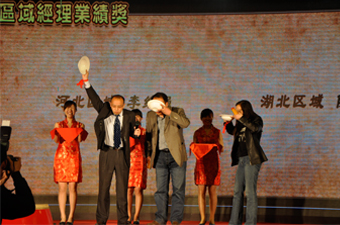 電商事業(yè)部的部分人員上臺發(fā)表感言 美酒敬英雄
