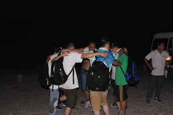 下午5:00點,全體人員身著統(tǒng)一服裝,懷著興奮而又期待的心情匯聚在207會議室,培訓部經(jīng)理傅龍進行了簡短而激昂的動員,提出了注意事項,就拉練過程中安全問題進行了強調(diào),他說,此次拉練過程中全程徒步,不允許搭乘車輛,不允許購買任何物品,不允許任何隊員以任何借口離隊,意在讓大家能夠深刻體會到我們是一個“不拋棄,不放棄”的強大團隊!晚上7:45分,拉練隊伍從公司出發(fā),沿著經(jīng)十路向章丘生產(chǎn)基地浩浩蕩蕩徒步前行。