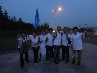 9月16日下午17:30,參加此次拉練的全體成員統(tǒng)一著裝,齊聚在生產(chǎn)基地會議室里參加了動員大會。培訓(xùn)部經(jīng)理傅龍先生帶領(lǐng)大家進(jìn)行了定向,就拉練人員分組、行程規(guī)則、注意事項(xiàng)等進(jìn)行了詳盡細(xì)致的介紹。全體人員按照動員要求分為三個(gè)小組,隨后,各小組人員用了約10分鐘的時(shí)間選隊(duì)長、起隊(duì)名、隊(duì)呼,畫隊(duì)旗。18:10,全體人員統(tǒng)一乘坐大巴車到達(dá)徒步的起點(diǎn)——山東財(cái)經(jīng)大學(xué)。18:30分,三個(gè)小組同時(shí)邁出了這次征程的第一步,拉練活動正式開始。