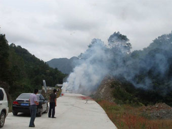 于經(jīng)理、馮經(jīng)理等人員合影                                                                   爆破現(xiàn)場