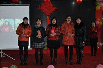 春節(jié)聯(lián)歡會在熱情洋溢的氣氛中進(jìn)行。首先,由公司常務(wù)副總杜征國先生致辭,杜經(jīng)理對公司2013年取得的成績進(jìn)行了通報(bào),對大家辛勤的付出表示了由衷的感謝,并對我們2014年的工作做出了戰(zhàn)略部署。我們有理由相信:在公司領(lǐng)導(dǎo)的帶領(lǐng)下,在全體新稀寶人的共同努力下,2014年我們定將再創(chuàng)輝煌!隨后,進(jìn)行了隆重的現(xiàn)場頒獎,主持人宣讀了2013年下半年生產(chǎn)基地“優(yōu)秀員工”“優(yōu)秀管理人員”及“發(fā)明創(chuàng)新獎”獲獎人員名單,公司高層領(lǐng)導(dǎo)及基地全體員工為獲獎人員獻(xiàn)上了最真誠的祝福和最熱烈的掌聲。