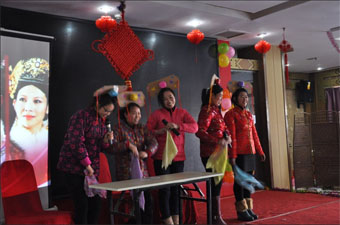 表彰環(huán)節(jié)結(jié)束后,聯(lián)歡會揭開了狂歡的序幕,本次聯(lián)歡會分成了四個(gè)隊(duì):新星隊(duì)、夢之隊(duì)、雄鷹隊(duì)和雷霆隊(duì)。首先進(jìn)行了團(tuán)隊(duì)風(fēng)采展示,接下來各個(gè)團(tuán)隊(duì)給我們帶來了精彩的節(jié)目匯演:《幸福廚房》私房菜和創(chuàng)意菜制作大PK環(huán)節(jié)既檢驗(yàn)了員工的廚藝水平又考驗(yàn)了大家的團(tuán)隊(duì)協(xié)作能力;活力四射的舞蹈《Nobody》、幽默搞笑的小品《土豪版甄嬛傳》、催人奮進(jìn)的歌曲《中國人》、《明天會更好》贏得了陣陣掌聲,體現(xiàn)出基地員工多才多藝的另一面;在節(jié)目表演的過程中還穿插組織了精彩的游戲節(jié)目,讓大家玩的歡呼雀躍、不亦樂乎。