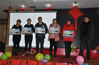 聯(lián)歡會結(jié)束后,舉行了豐盛的午宴,午宴上全體員工共同舉杯慶祝豐收的2013,喜迎充滿希望的2014。午宴過程中進(jìn)行了抽獎及游戲頒獎,領(lǐng)導(dǎo)與員工的親情互動將午宴推向了高潮,整個(gè)年會在溫馨、歡樂的氣氛中度過。