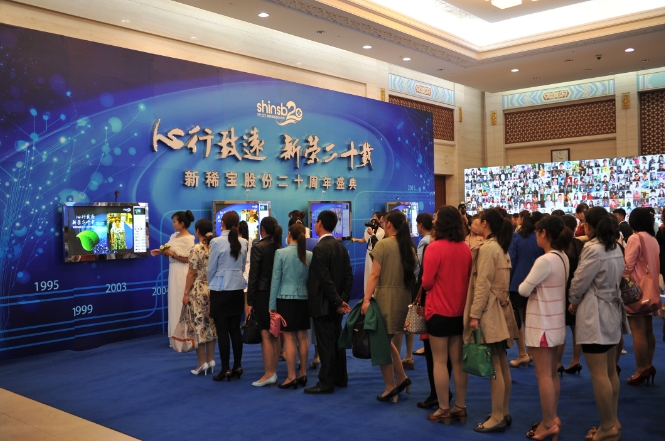 2015年5月9日,是新稀寶股份二十周歲生日,這一天,新稀寶股份全體員工共計(jì)600余人,齊聚山東濟(jì)南南郊賓館為公司慶生,公司董事長(zhǎng)湯傳忠先生、常務(wù)副總杜征國(guó)先生、副總鄭朝霞女士等全體高層盛裝出席。