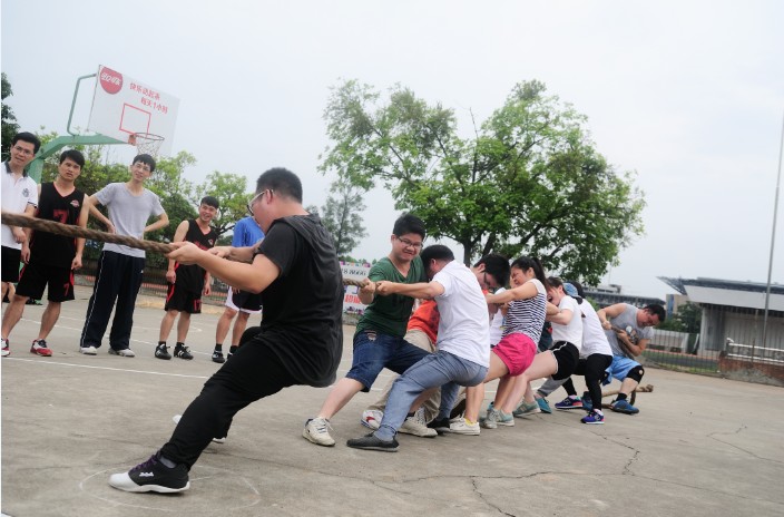 本次運動會由后勤部副經(jīng)理陳文歡先生主持,臺上的他一絲不茍地宣讀運動會的注意事項,臺下的運動健將們認認真真的聽,并摩拳擦掌、躍躍欲試。隨著主持人一聲“運動會現(xiàn)在開始!”隊員們立馬到達各自位置做好參賽準備。本屆運動會共設置拔河、400米接力、立定跳遠、女子100米男子400米、女子800米男子1000米、鉛球、趣味游戲共七個項目,集傳統(tǒng)運動和趣味性項目一起,增加了此次運動會的特色。