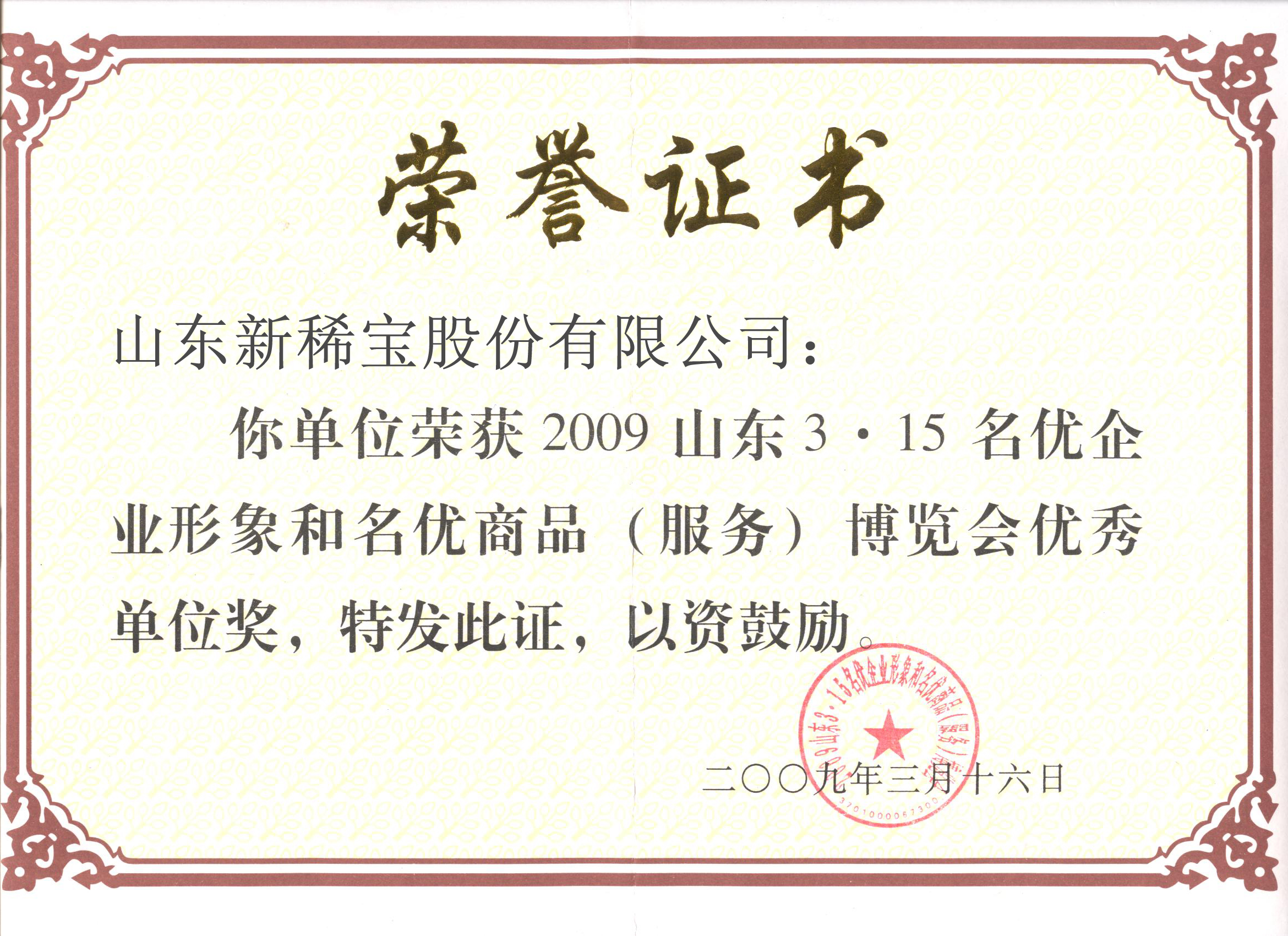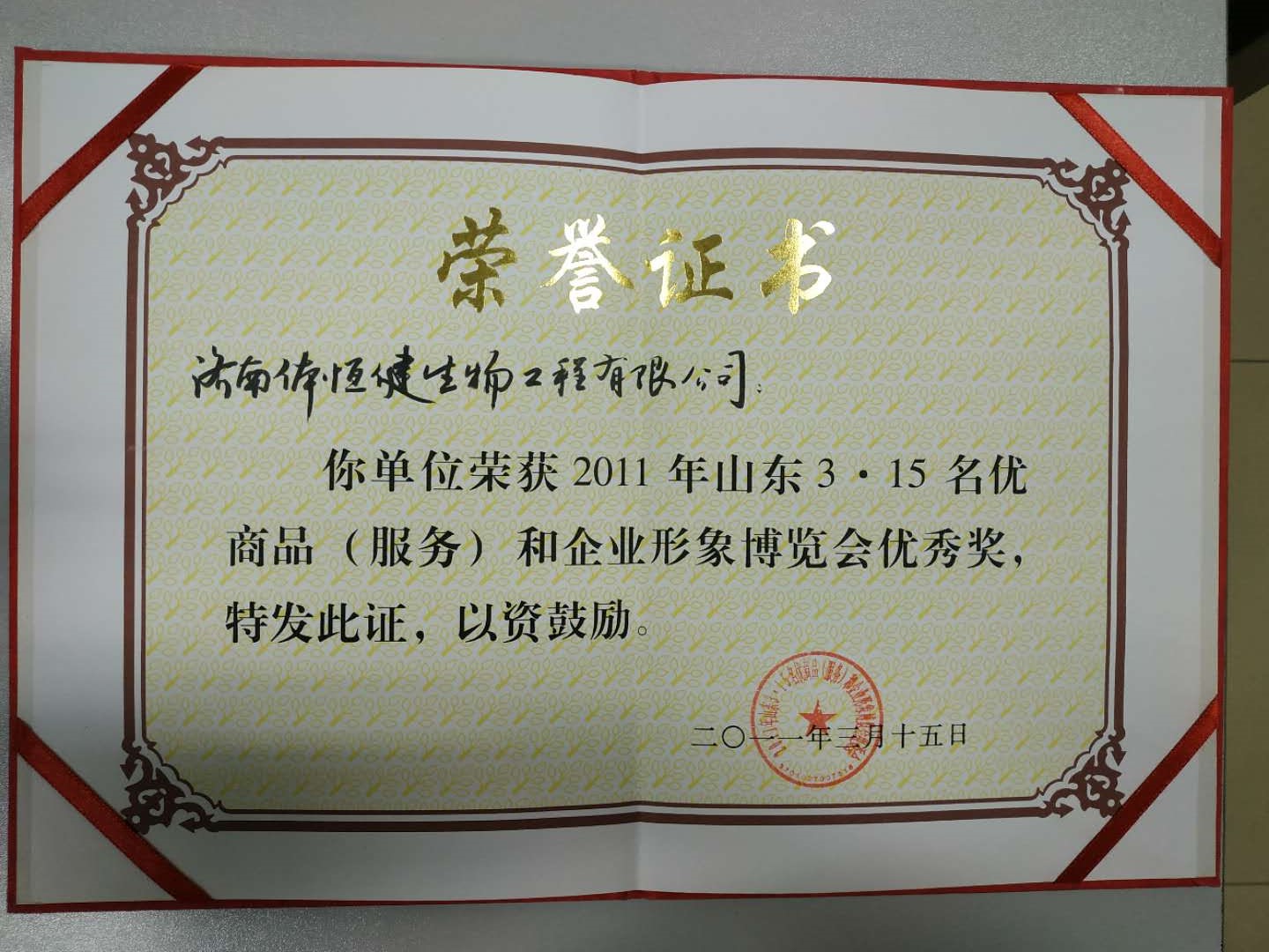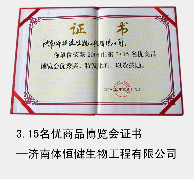 2004~2011年多次被評(píng)為“山東3-15名優(yōu)商品(服務(wù))和企業(yè)形象博覽會(huì)優(yōu)秀獎(jiǎng)”