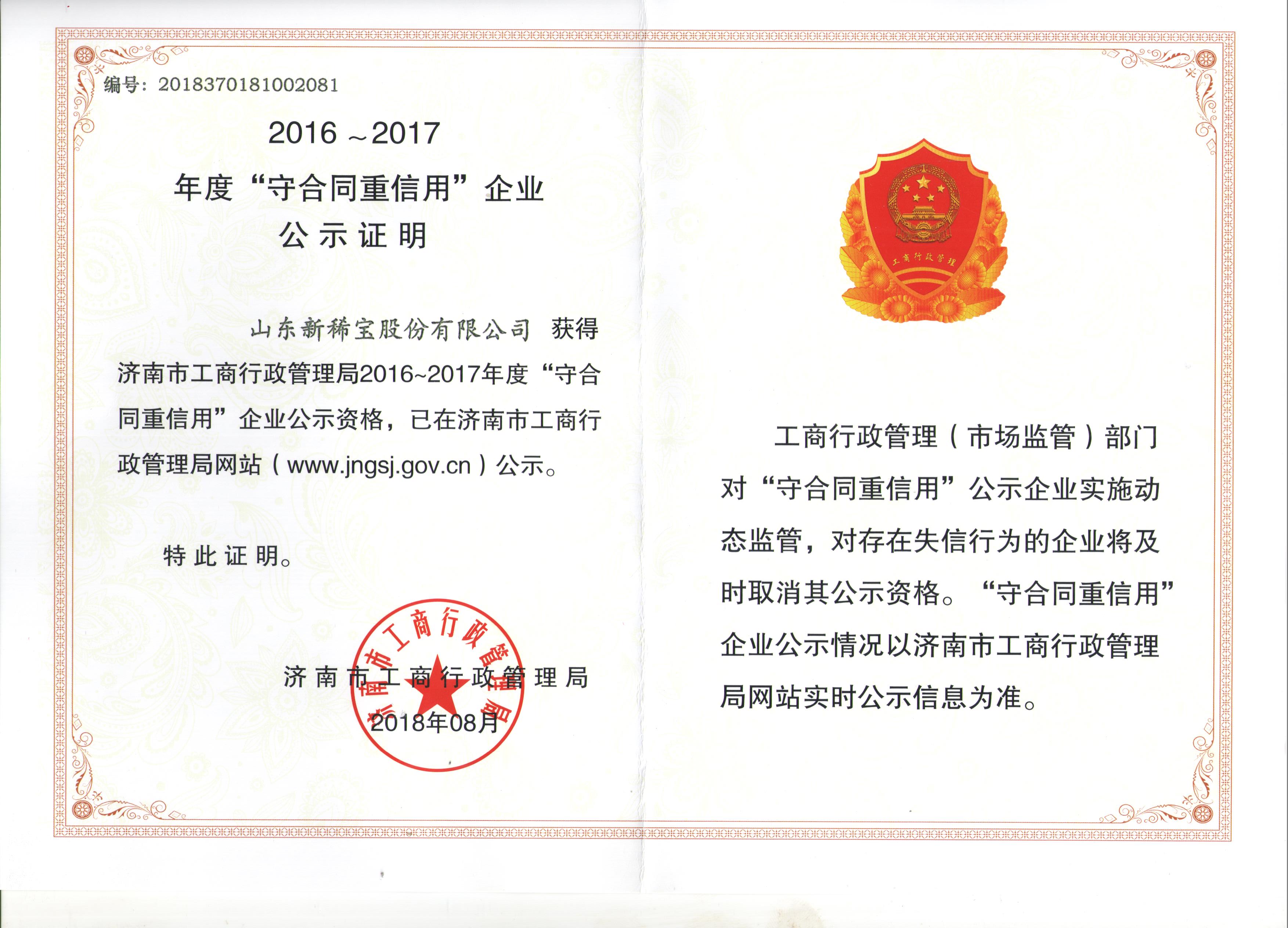 1998年至今,連續(xù)多次被濟(jì)南市工商行政管理局認(rèn)定為“守合同重信用企業(yè)”