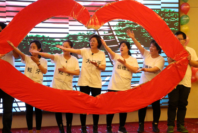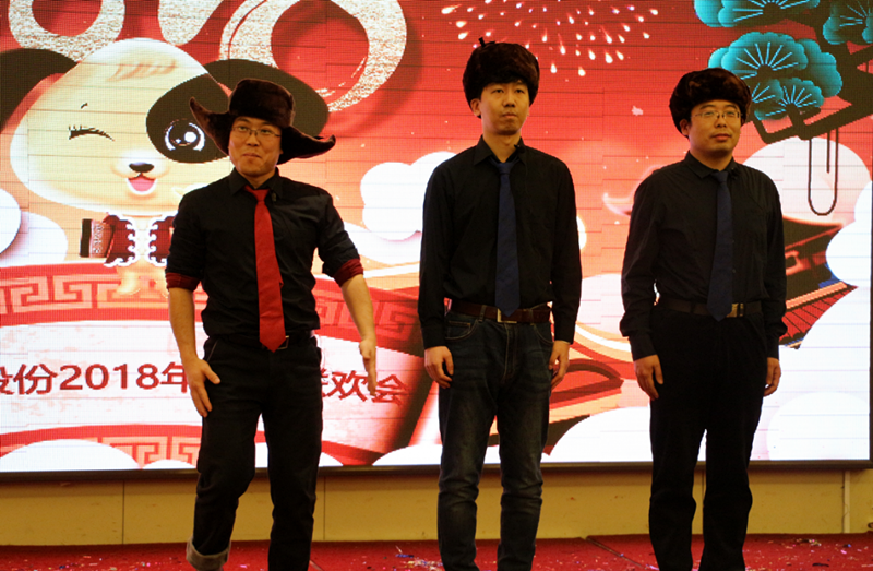 總結(jié)表彰大會結(jié)束后迎來了萬眾期待的新春聯(lián)歡會,后勤所有員工共分為四個代表隊,分別為財孕隊、相親相愛一家人隊、玉蘭隊和C哩C哩隊,四個代表隊為大家?guī)砹司实墓?jié)目。首先出場的是財孕隊的廣場舞《火了火了火》,他們用熱情之火燃爆全場;相親相愛一家人的交誼舞《愛的華爾茲》為大家?guī)砹瞬灰粯拥睦寺裉m隊的《大王叫你來巡山》活潑俏皮,C哩C哩隊的爵士舞《C哩C哩》引爆全場將晚會推向高潮。伴隨著歌曲《尊道貴德》,帶領(lǐng)大家感受道與德帶來的寧靜與莊重,小品《在那遙遠(yuǎn)的地方》除了為大家?guī)須g笑外,也讓我們感受到愛與奉獻(xiàn)的可貴。隨后畫風(fēng)一轉(zhuǎn),小型舞臺劇《喀秋莎》、《拔牙》形式新穎,幽默搞笑,為大家?guī)砹藙e樣的觀感體驗。除此之外,還有原創(chuàng)作品《三句半》緊扣大家的工作和公司的發(fā)展,讓我們在歡笑中回顧了這一年的歷程。后勤的女將們帶來的小品《女神和女漢子》,逗趣的表演、傳神的刻畫將整場晚會再次推向高潮;晚會在歌曲《365個祝?!分新湎箩∧唬钊嘶匚稛o窮。