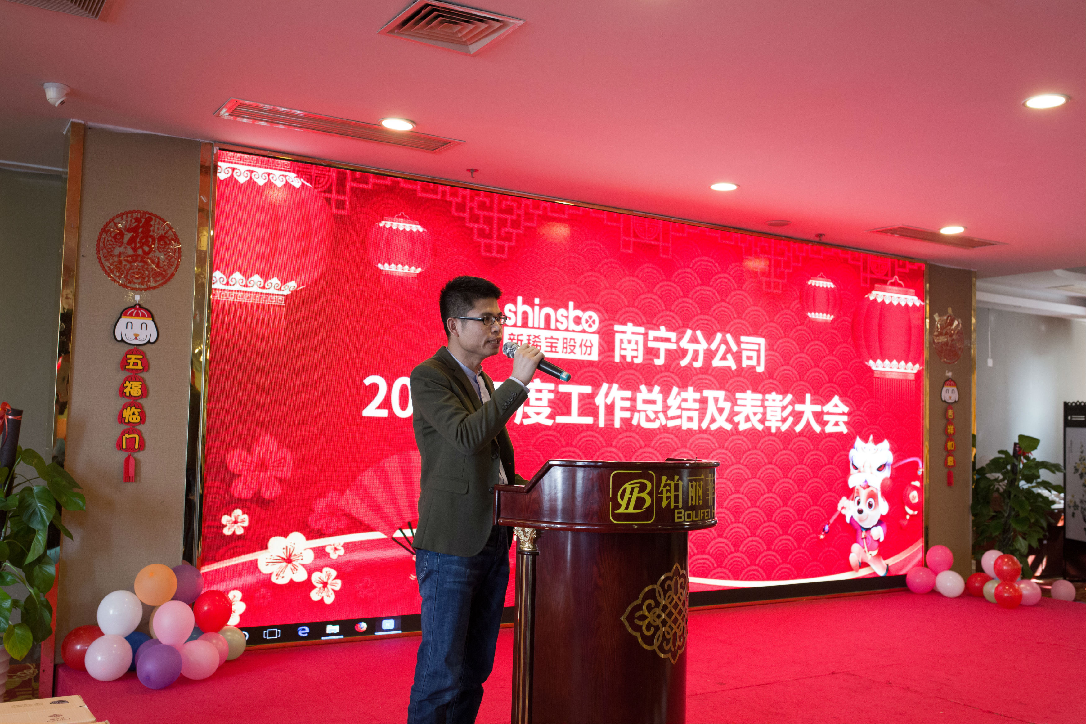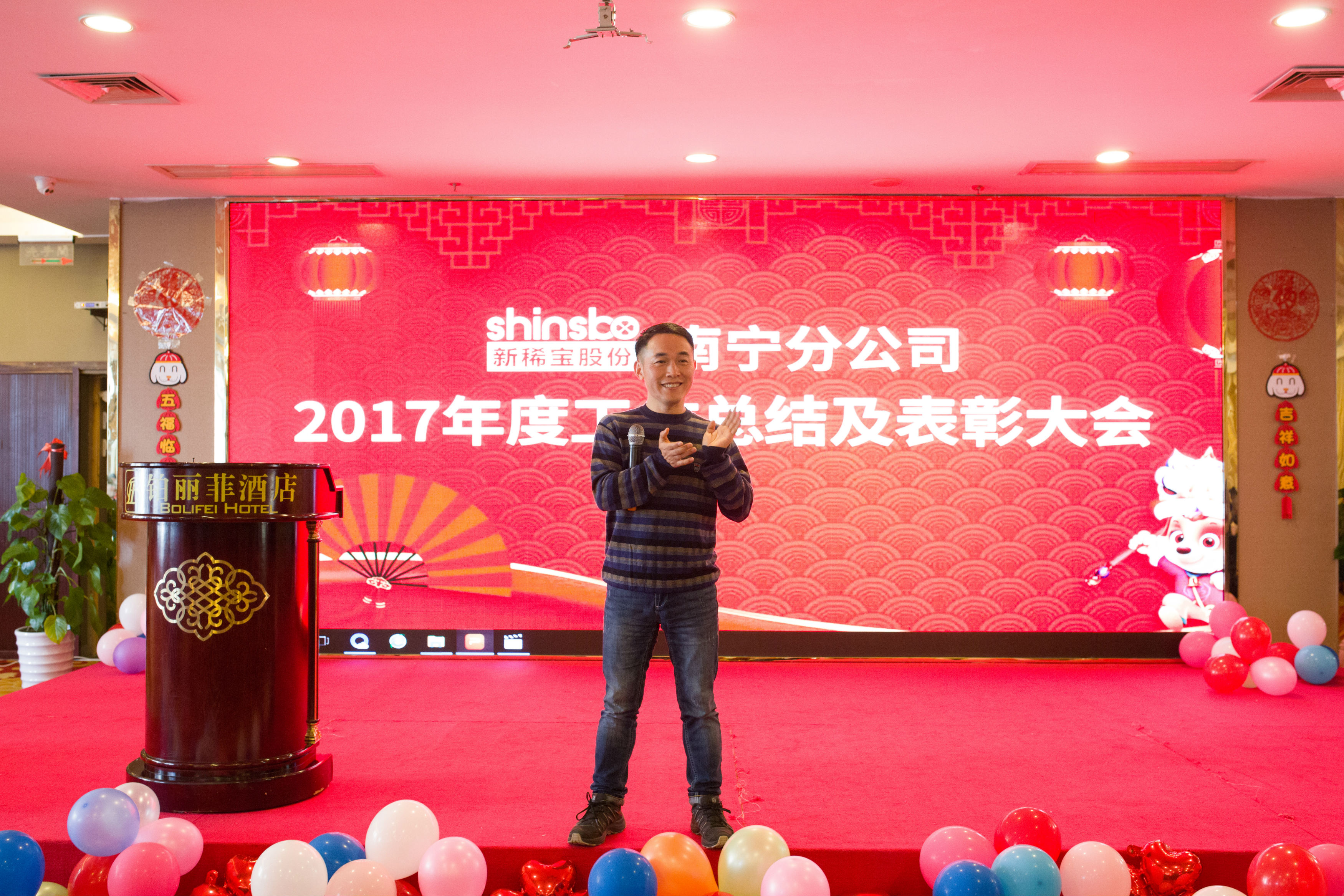 最后,集團公司董事長湯傳忠先生作致詞。湯經(jīng)理總結了南寧分公司全體員工努力拼搏、團結協(xié)作等4個優(yōu)勢并指出我們對未來風險預測和把控方面不足等4個問題。湯經(jīng)理的講話鼓舞人心,希望2018年繼續(xù)發(fā)揚“南寧精神”,前方業(yè)務部門和后方后勤部門齊心協(xié)力,共創(chuàng)輝煌,并把新稀寶的文化和南寧精神帶到世界的每個角落,帶到未來!