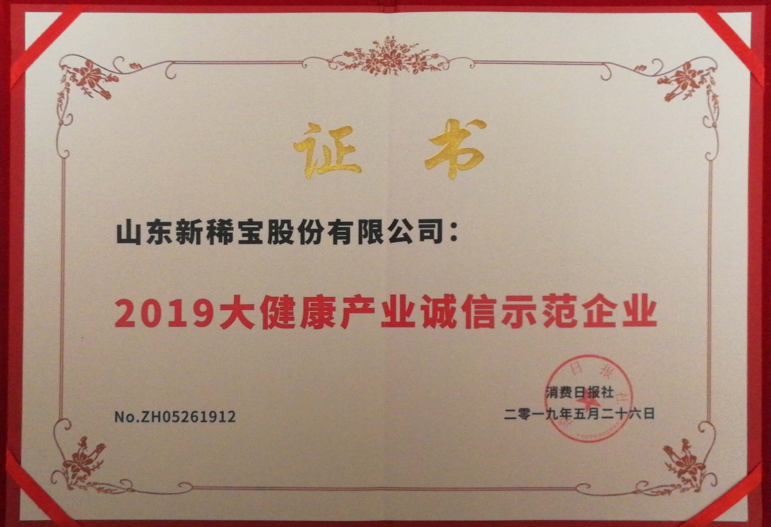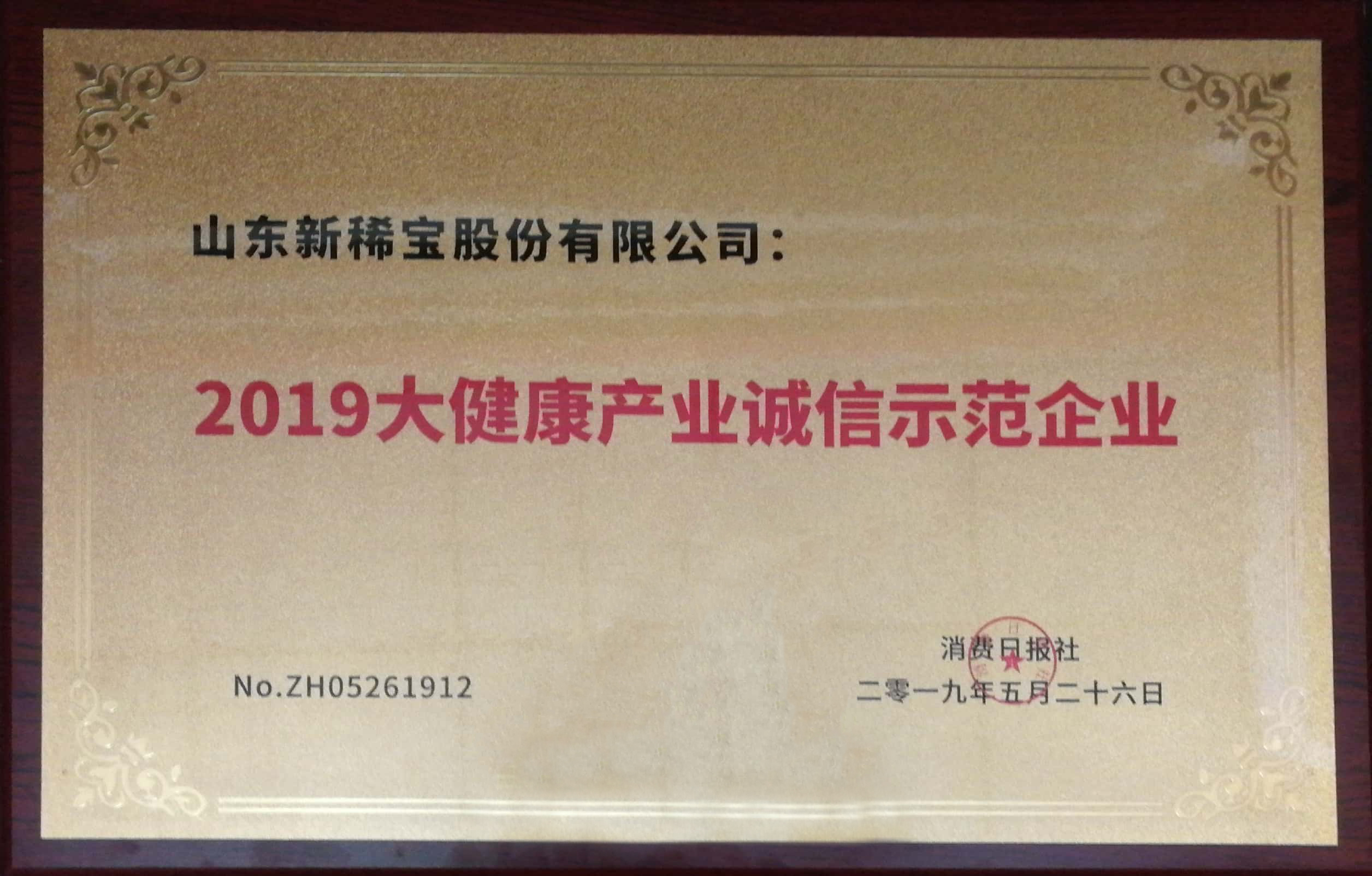 被消費(fèi)日報(bào)社評為“2019大健康產(chǎn)業(yè)誠信示范企業(yè)”