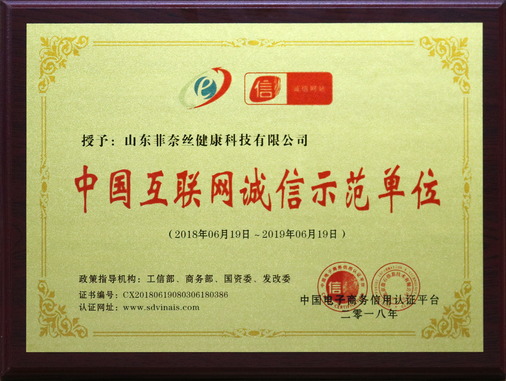2018年被中國電子商務(wù)信用認(rèn)證平臺授予“中國互聯(lián)網(wǎng)誠信示范單位”