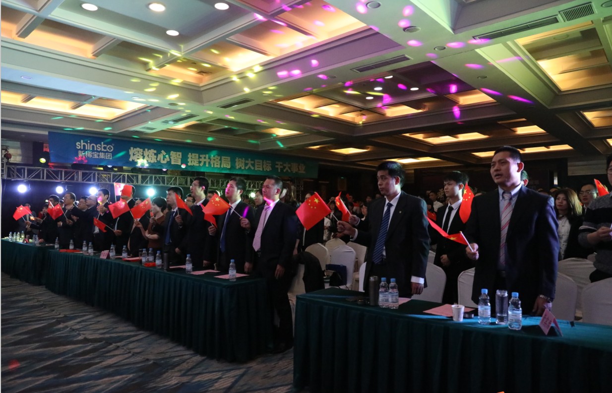 大會在莊嚴(yán)的國歌聲中正式拉開帷幕,新稀寶集團(tuán)人力資本增值部總監(jiān)兼人力行政部經(jīng)理于鳳仙女士主持大會,在主持人的帶領(lǐng)下全場共同觀看了氣勢恢宏的《贏定2020主題片頭》,全體參會代表集體誦讀企業(yè)文化,并宣讀本次年會主題口號“肩負(fù)使命、擔(dān)當(dāng)責(zé)任、砥礪奮進(jìn)、勇攀高峰;熔煉心智、提升格局、樹大目標(biāo)、干大事業(yè)”,慷慨激昂的誦讀聲響徹整個會場,激勵著在場的每一位將士。