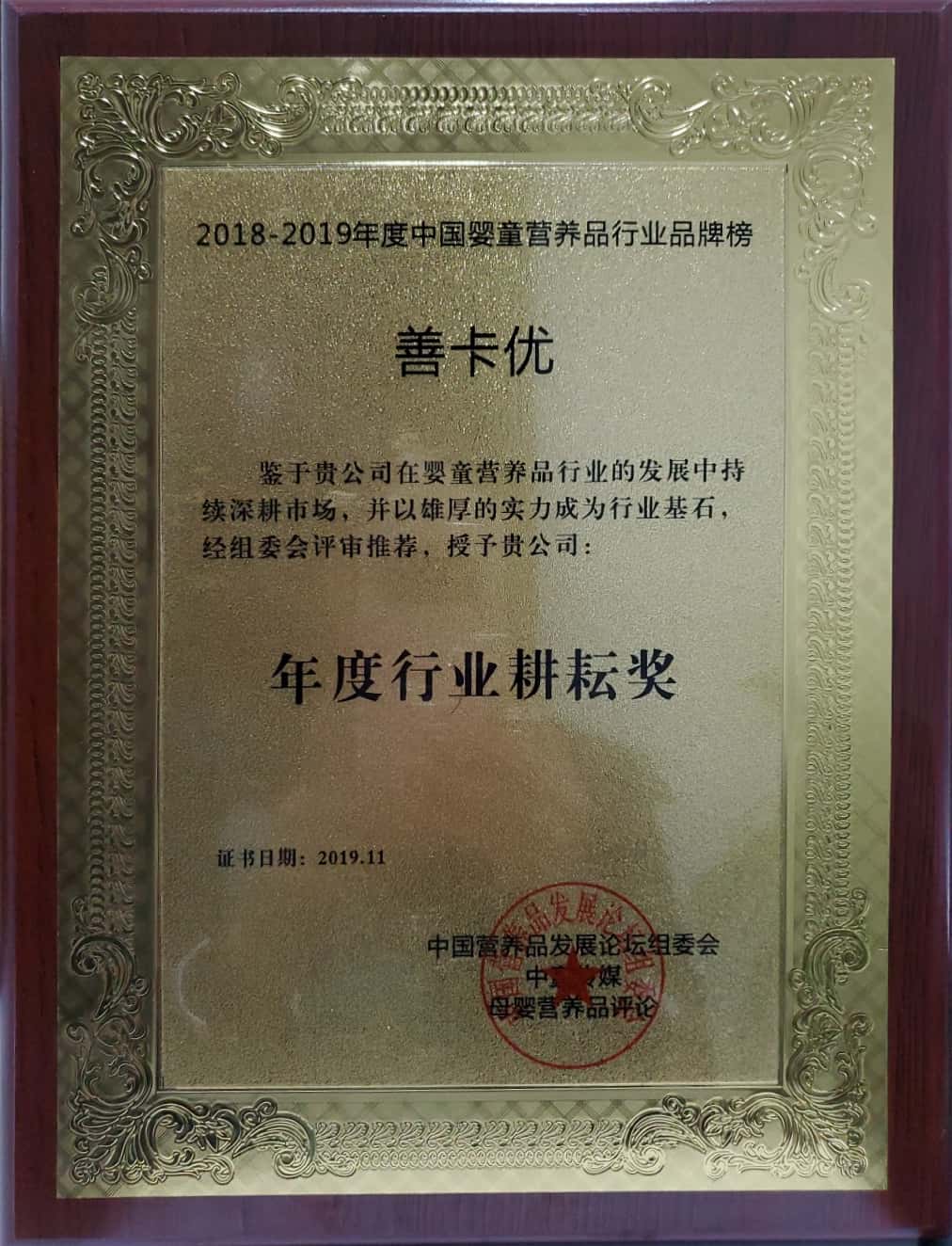 善卡優(yōu)被中國營養(yǎng)品發(fā)展論壇組委會評為“年度行業(yè)耕耘獎(jiǎng)”
