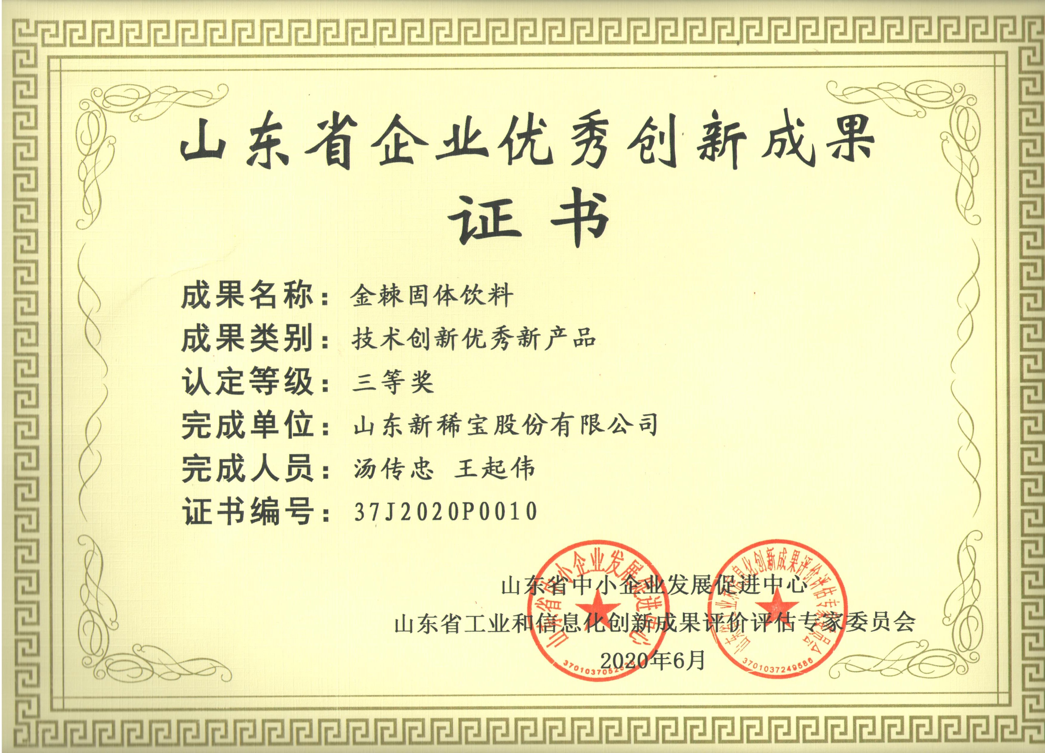 金棘固體飲料獲得技術(shù)創(chuàng)新優(yōu)秀新產(chǎn)品三等獎(jiǎng)