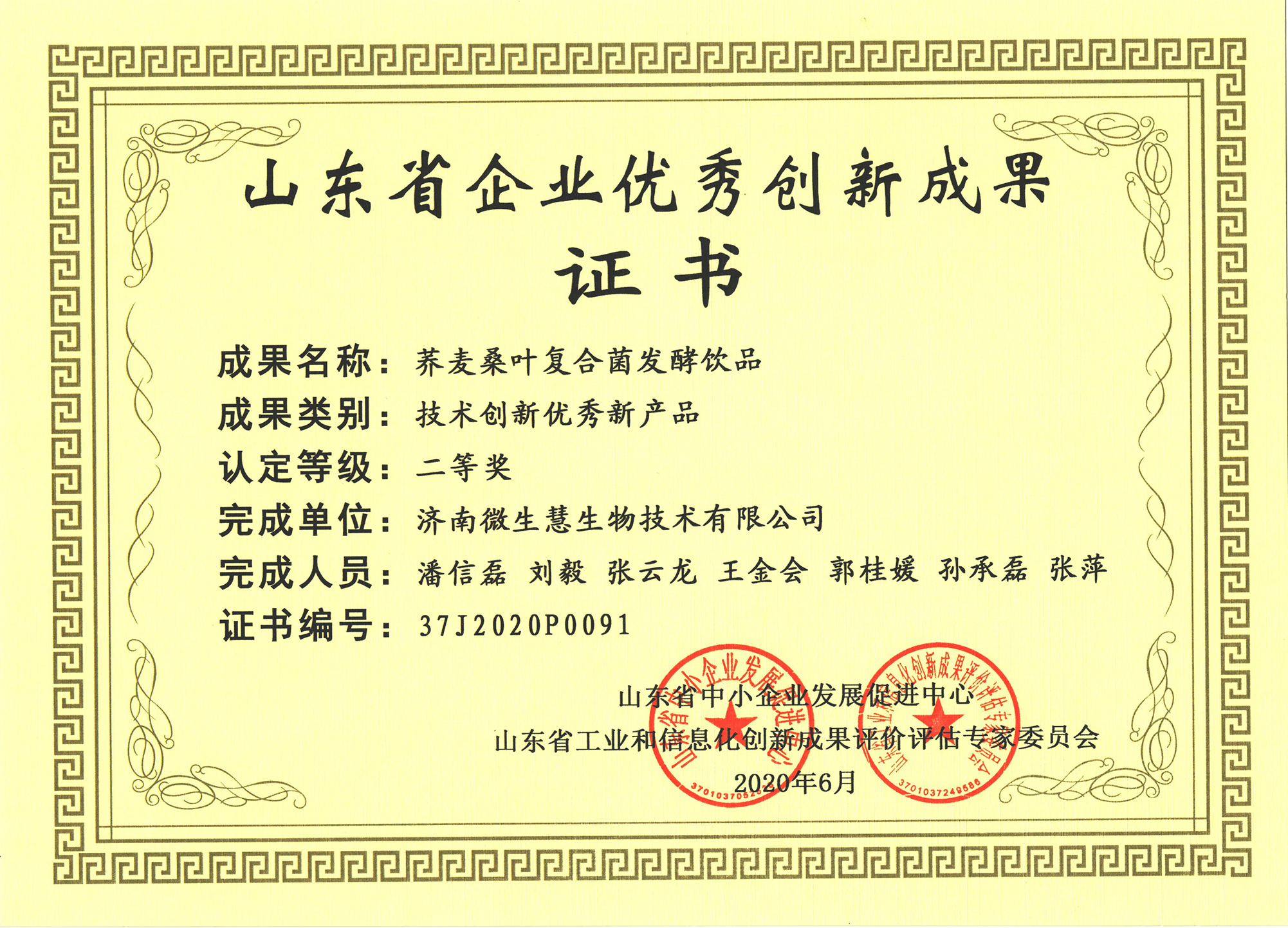 蕎麥桑葉復(fù)合菌發(fā)酵飲品獲得技術(shù)創(chuàng)新優(yōu)秀新產(chǎn)品二等獎(jiǎng)