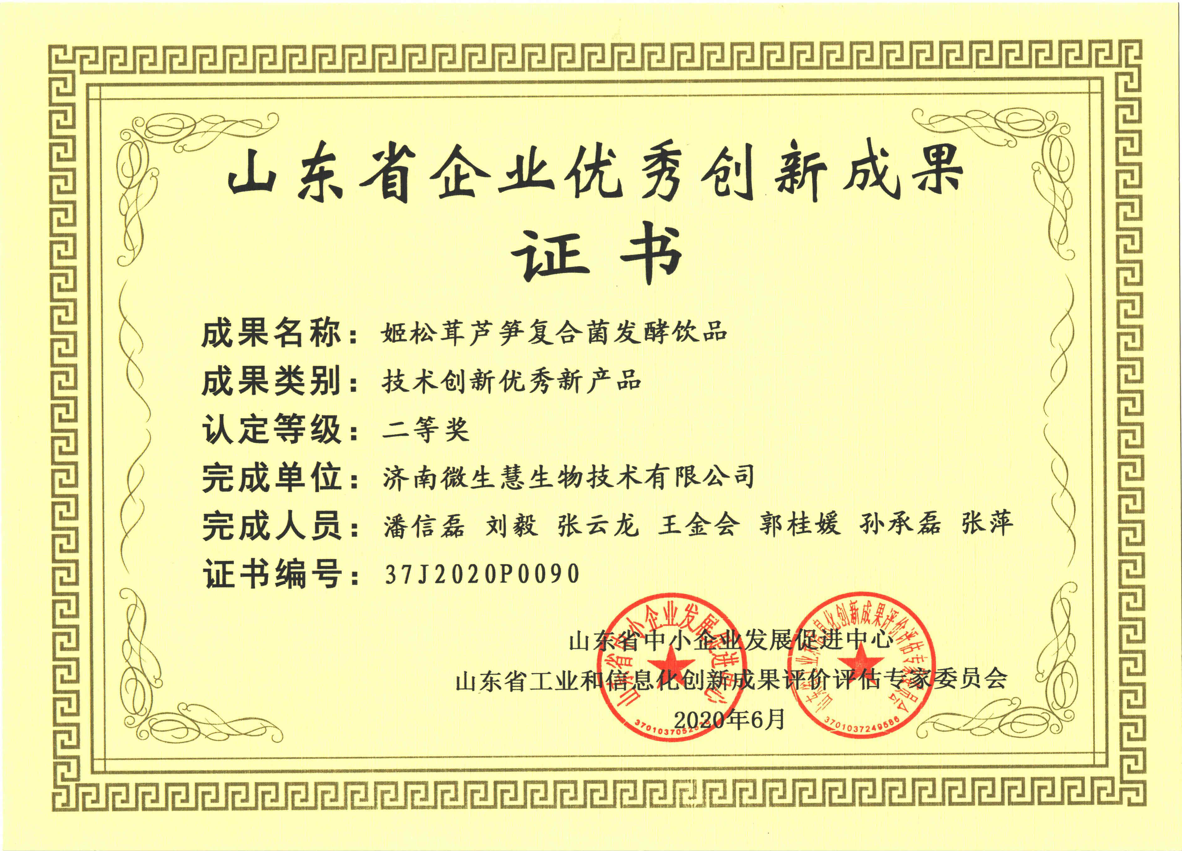 山東省企業(yè)優(yōu)秀創(chuàng)新成果證書